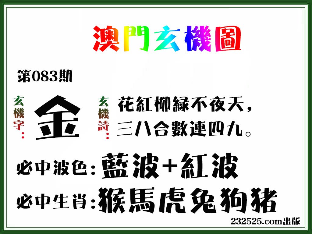 第083期绝杀半波【绿双】开?00准 |